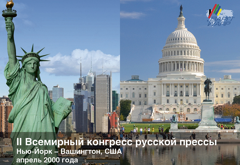 II Всемирный конгресс русской прессы прошел в апреле 2000 года в Соединенных Штатах Америки - в Нью-Йорке и Вашингтоне.