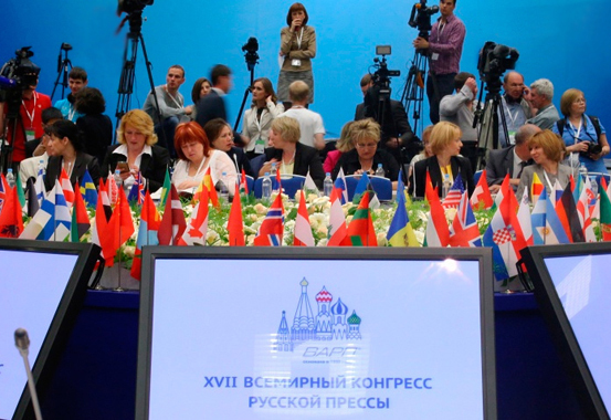 Он отметил, что русская пресса в этом году была представлена на конгрессе релевантно и, несмотря на сложную внешнеполитическую ситуацию, сложившуюся за последний год, продемонстрировала, что "остается с Россией, даже имея порой свой критический взгляд на нее".